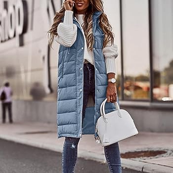 Weste Damen Lang Daunenweste Damen Lang Wintermantel Vest mit Kapuze Weste Mantel Ärmellose Warmer Daunenmantel mit Taschen Steppweste Damen …